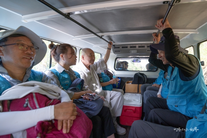 대화를 나누다 보니 비포장 도로가 끝나고 포장도로가 나왔습니다. 모두 트럭에서 내려 버스로 갈아탔습니다.