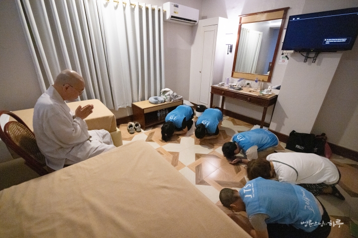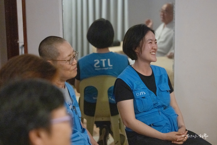 저녁 8시부터는 필리핀JTS 활동가들과 간담회를 했습니다. 활동가들이 스님에게 삼배로 법문을 청하자 스님은 수고한 활동가들을 격려했습니다.