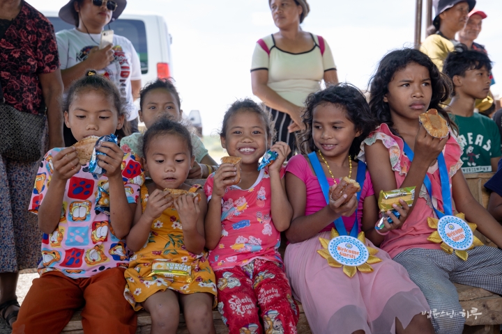 그리고 아이들에게 간식을 나눠 주었습니다.