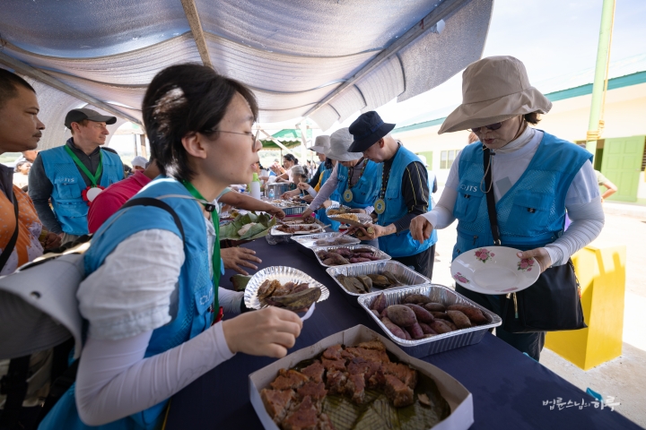 마지막으로 다과 시간을 가졌습니다. 마을 주민들이 정성껏 음식을 준비해 주었습니다. 직접 농사지은 걸로 만든 음식들이 소박하게 나왔습니다.