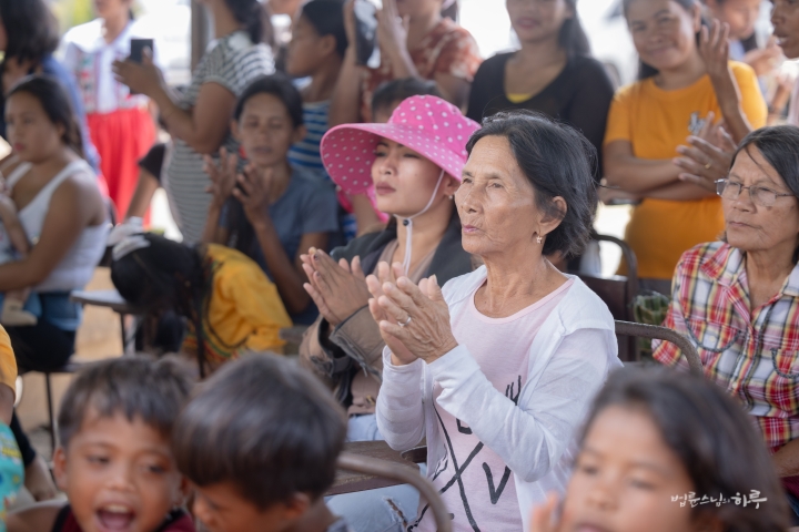 박수를 치는 마을 주민들의 얼굴에 기쁨이 가득했습니다.