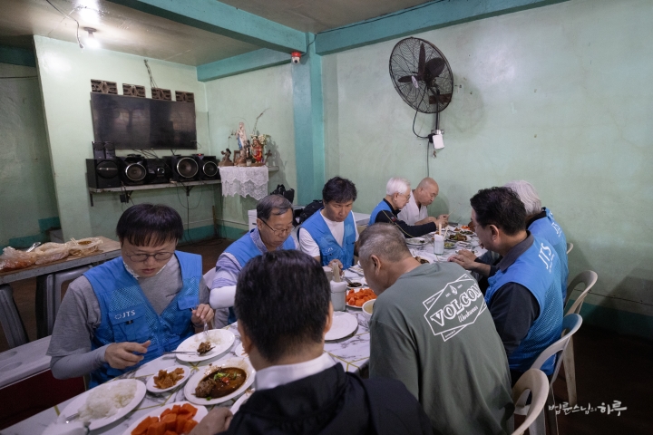각자 숙소에서 휴식을 취한 뒤 해가 저물고 저녁 6시에 숙소 1층 식당에 모여 함께 저녁 식사를 했습니다. 식사를 하면서 오늘 준공식을 참여하면서 느낀 소감을 나누었습니다.