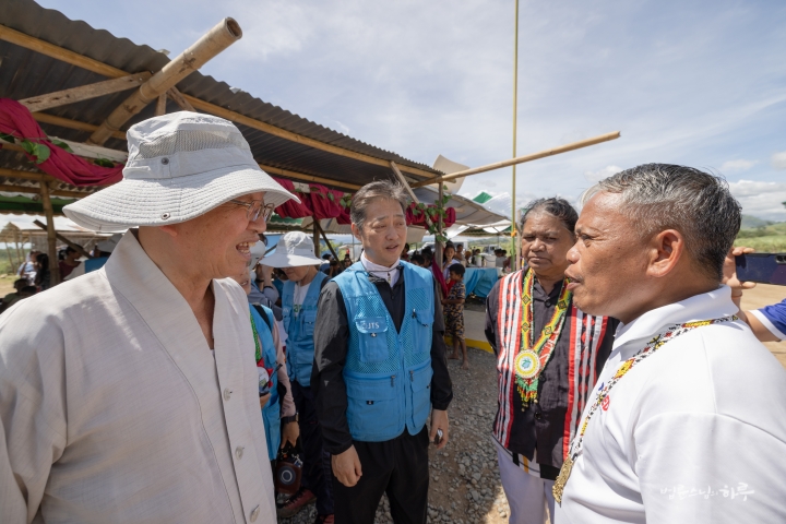 지금 세계적으로 기후 위기가 도래한 이유도 인간이 자연을 파괴했기 때문입니다. 이제는 기독교, 불교, 이런 종교적인 구분보다도 자연과 하나가 되는 것이 더욱 중요한 시대로 나아가게 되었습니다. 그래서 학교를 짓는 것뿐만 아니라 원주민 부족이 전부 모여서 학교별로 전통 춤 경연 대회를 한다든지, 아이들이 전통문화의 소중함을 연설하는 웅변대회를 열어서 시상을 한다든지, 이런 프로그램도 진행해야 합니다. 이에 대한 예산 역시 JTS가 지원해 주겠습니다.”