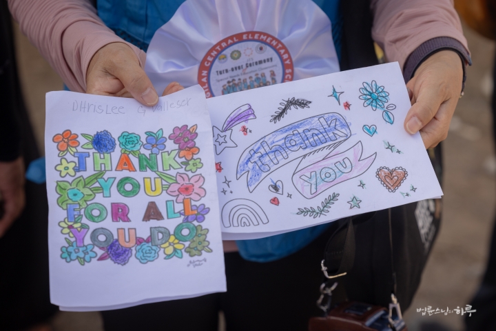 사진 촬영이 끝나고 아이들이 JTS 활동가들에게 다가와 직접 쓴 감사 편지를 수줍게 건넸습니다.
