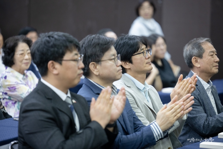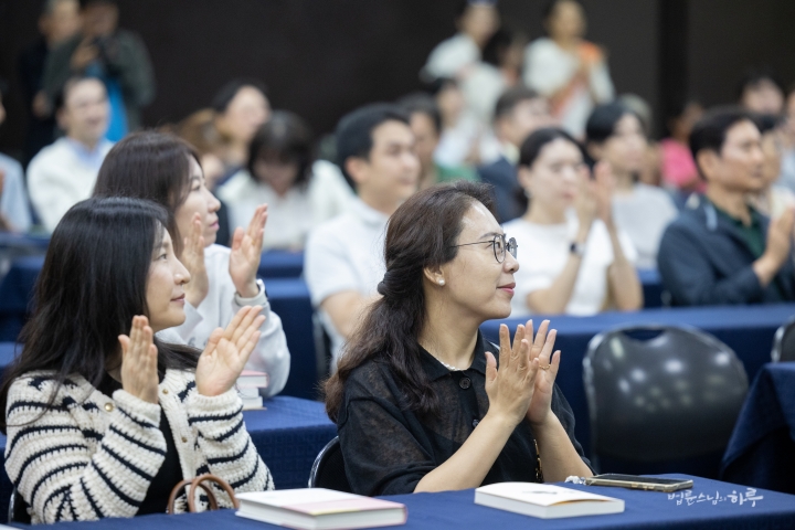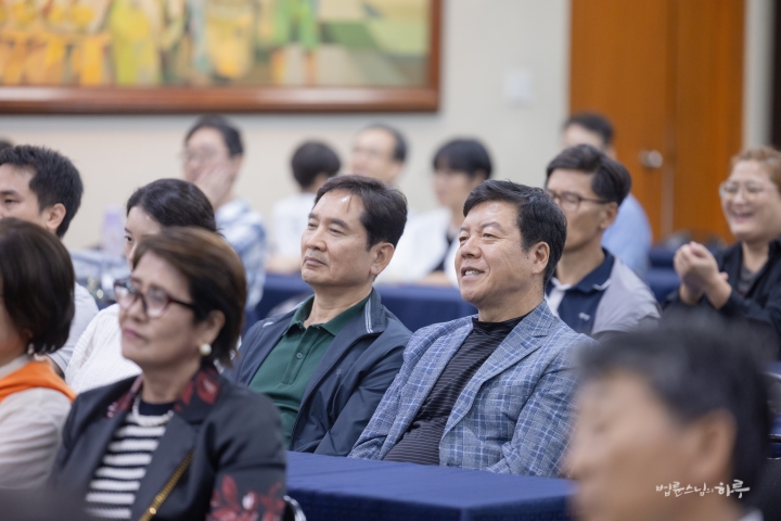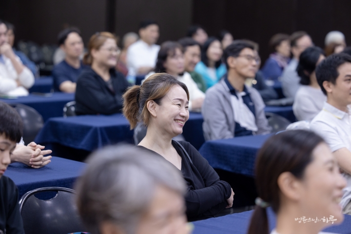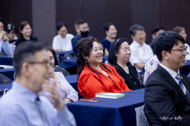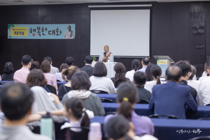 일 년 만에 만나 안부를 주고받다 보니 강연을 시작할 시간이 되었습니다. 100여 명이 자리를 가득 메운 가운데 스님이 무대로 걸어 나오자 큰 박수와 함성이 터졌습니다.