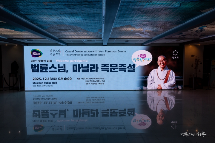 오늘 강연이 열리는 곳은 마닐라 시내 중심가인 마카티 시티에 위치한 아시안 경영대학원(AIM)입니다. 아시아 지역의 리더와 전문 경영인을 양성하기 위해 설립된 경영대학원인데, 오늘은 이곳에서 법륜스님의 즉문즉설 강연이 열렸습니다.