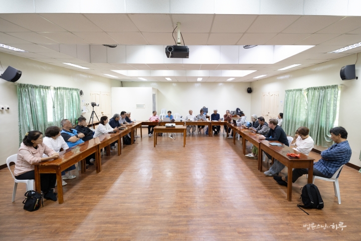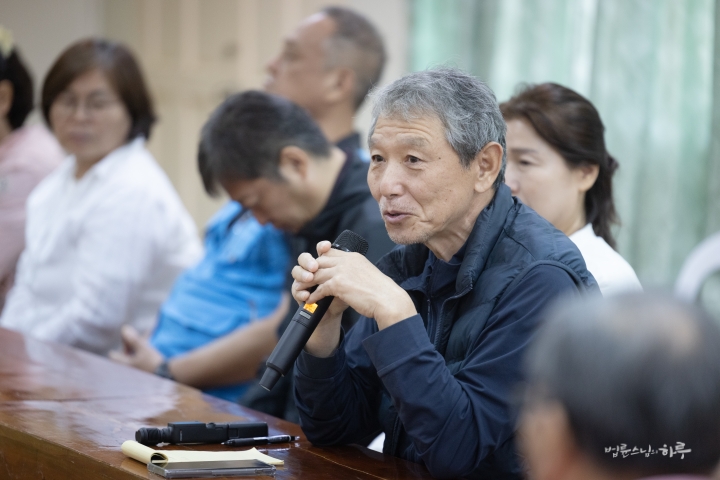 이어서 이번 준공식에 참석하면서 제안하고 싶은 사항이나 내년 사업에 반영했으면 하는 사항에 대해 자유롭게 의견을 말하고 질문하는 시간을 가졌습니다. 누구든지 손을 들고 건의 사항을 말하거나 스님에게 궁금한 점을 물었습니다.