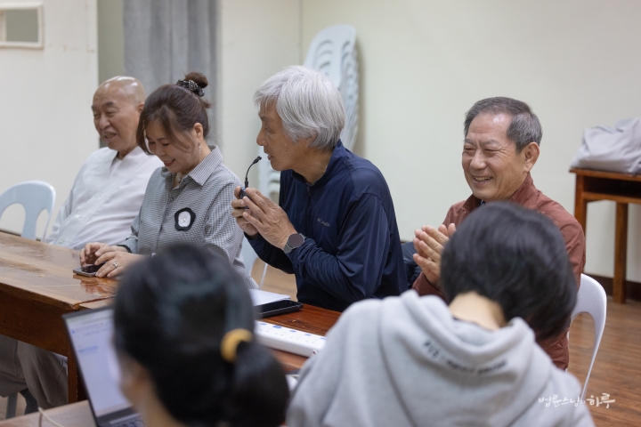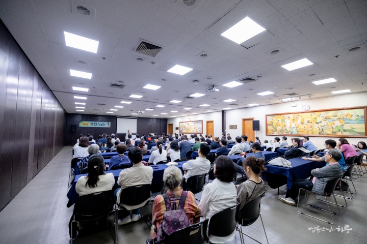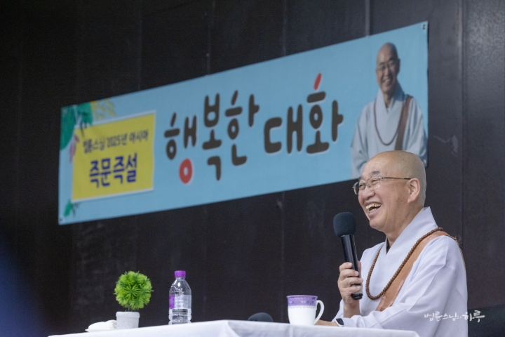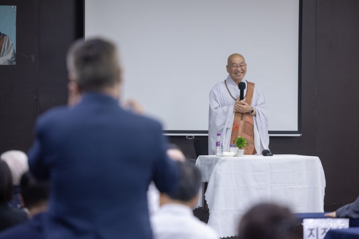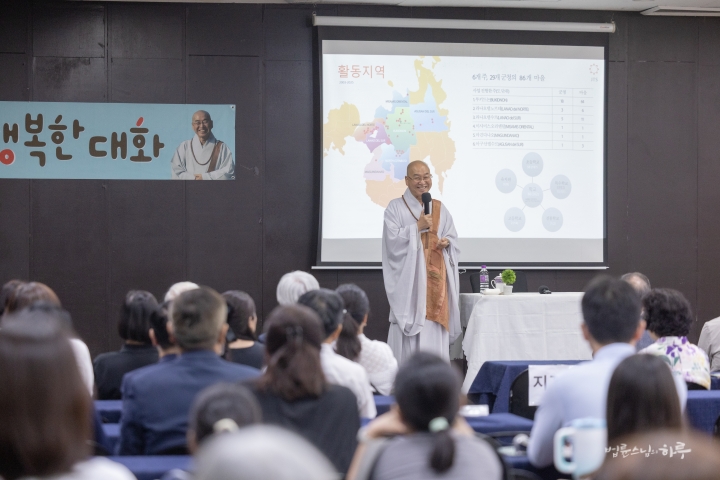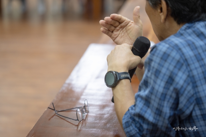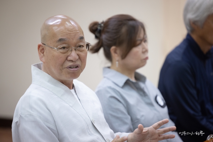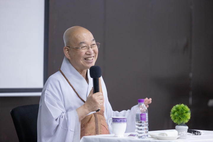 “정토회 안에서 많이 하고 있습니다. 수행법회에서 공지도 하고요. 수행법회를 듣지 않는 걸 들키셨네요.” (웃음)