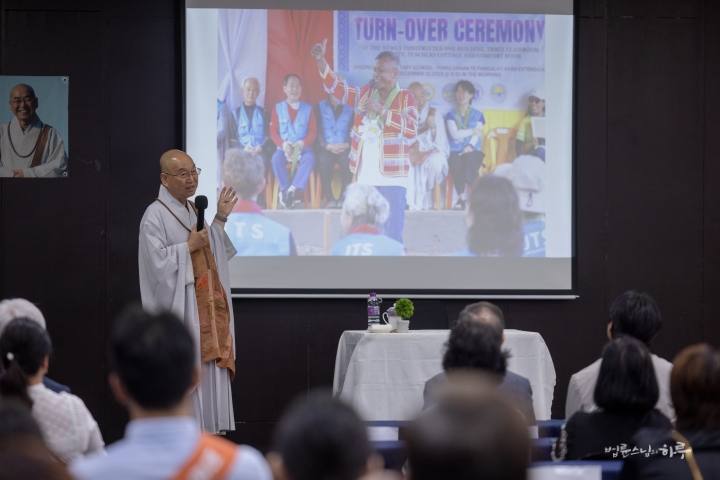 이어서 필리핀JTS 사무국장을 맡고 있는 향훈 법사님이 올해 사업 결과와 내년 사업 계획을 발표했습니다.