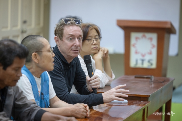 “필리핀JTS가 그동안 사업을 해 오면서 늘 겪는 어려움 가운데 하나가 활동가 부족 문제인 것 같습니다. 그만큼 해결하기가 쉽지 않은 거겠죠. 이와 관련해 스님께서는 어떤 복안을 가지고 계시는지 궁금합니다. 사업은 확대가 되는데, 한국에서 젊은 활동가들을 파견하는 것은 점점 어려워지고 있는 상황입니다. 스님께서 정년퇴직한 사람들이 와서 봉사하는 방안을 검토하고 계신 것으로 알고 있습니다. 제 주변 친구들을 봐도 아직 육체적으로나 정신적으로 건강한데, 은퇴 후 뭘 해야 할지 몰라서 시간만 보내는 친구들이 많습니다. 이런 사람들에게 적극적으로 홍보해 보면 어떨까 하는 생각이 듭니다. 예를 들어 봉사에 관심이 있는 은퇴자들을 모아서 JTS 필리핀 사업이나 인도 사업을 구체적으로 소개하는 것입니다. 스님께서 직접 이 역할을 해 주시면은 효과가 있을 것 같은데, 이에 대해 스님의 생각을 여쭙습니다.”