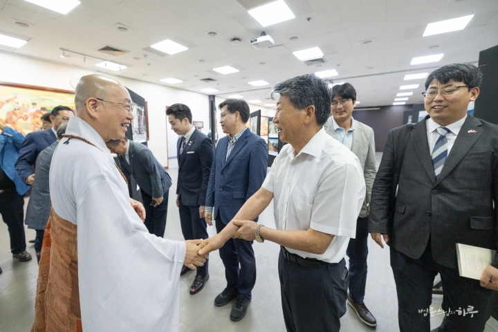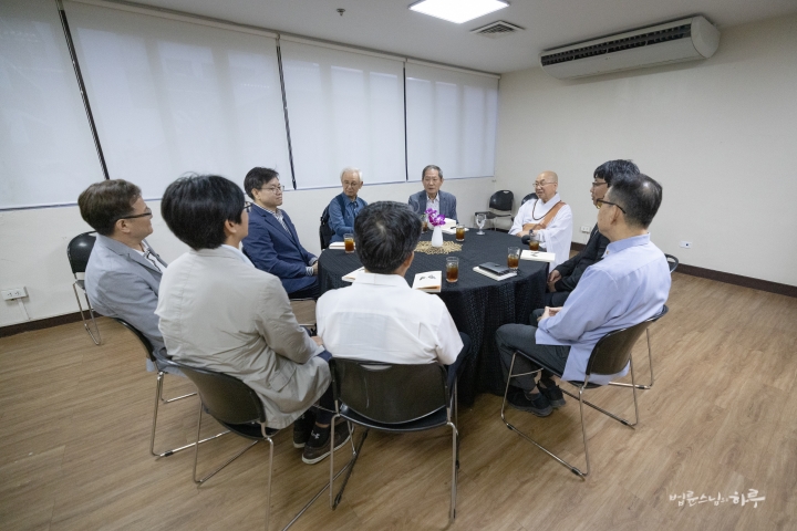 사진전 관람을 마치고 스님은 역대 필리핀 한인회장, 부영사, 국제학교 교장 선생님, 노인회 회장을 비롯한 마닐라 교민 사회의 원로 인사들과 차담을 나누었습니다.