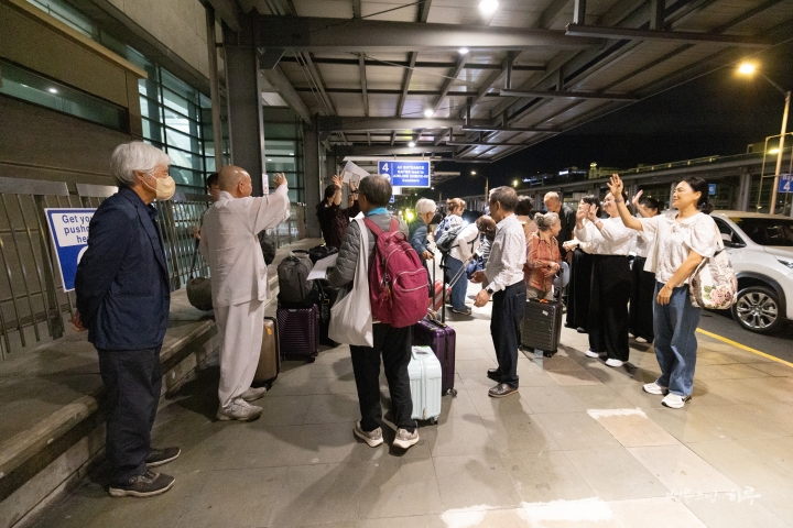 밤 10시가 넘어 필리핀 마닐라 공항으로 갔습니다. 스님은 배웅을 나온 정토회 회원들에게 강연을 준비하느라 수고했다고 격려한 후 JTS가 민다나오에서 하고 있는 학교 건설뿐만 아니라 자연 재난에 대한 긴급 구호 활동, 백내장 수술을 비롯한 의료 지원 활동에도 많이 참여해 줄 것을 당부했습니다.