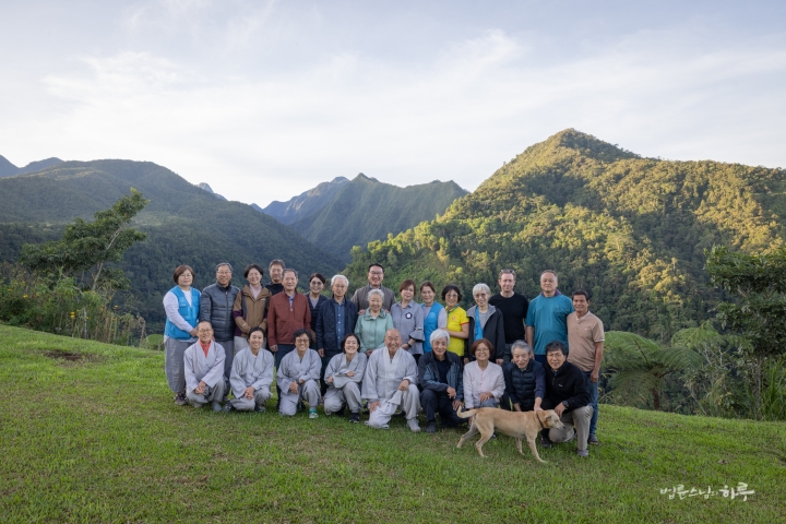 스님의 제안에 키탕글라드 산을 배경으로 다 함께 기념사진을 찍었습니다.