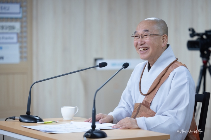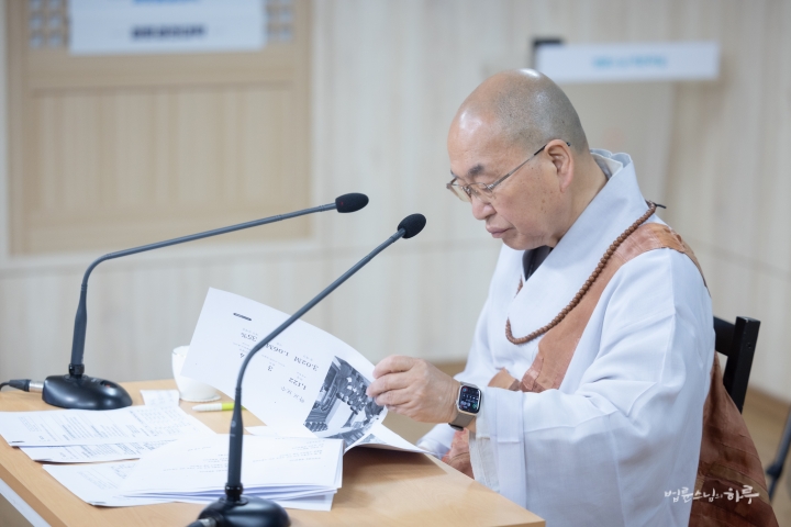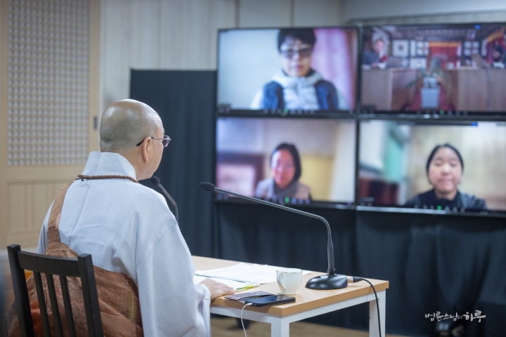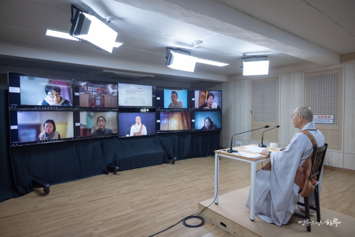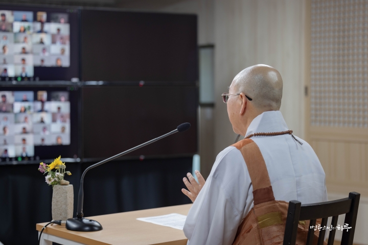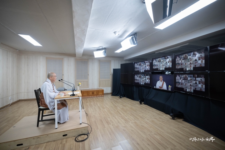 스님은 새벽 수행과 명상을 마친 후 두북수련원 방송실에서 오전 8시부터 외국인 천일결사자를 위한 제2-1차 천일결사 회향식에 참석했습니다.