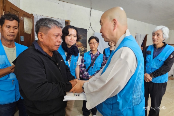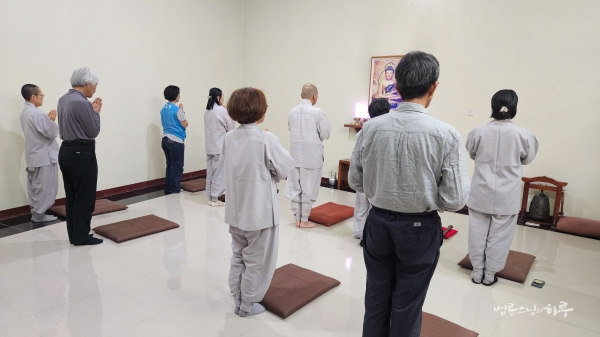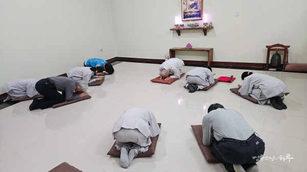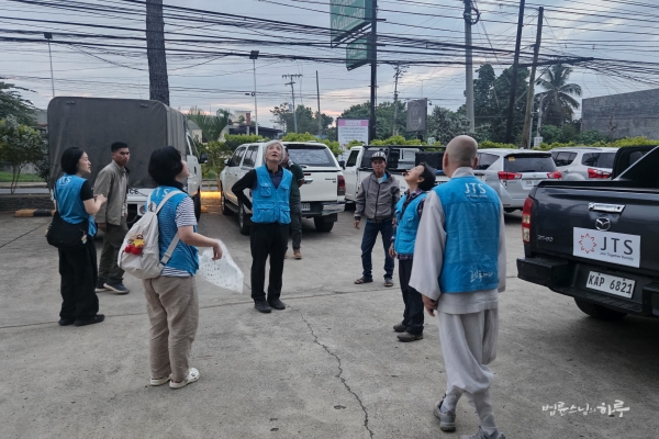 개인 정비 시간을 가진 후 저녁 6시에 JTS 활동가들과 함께 예불을 올렸습니다. 예불이 끝난 후 필리핀JTS 활동가들이 스님께 삼배로 인사를 드렸습니다.