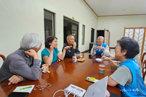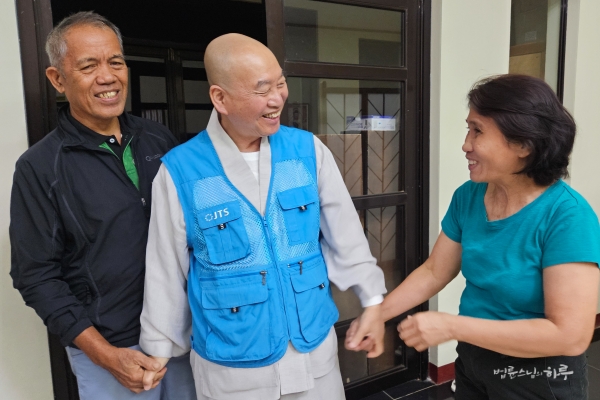 이 자리에는 특별한 손님도 있었습니다. 필리핀 JTS에서 회계를 담당하고 있는 김영애 님의 남편 김승진 님이 JTS 센터를 방문하여 스님께 인사를 드렸습니다.