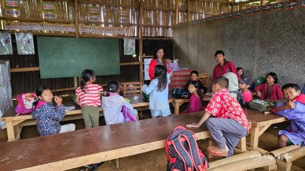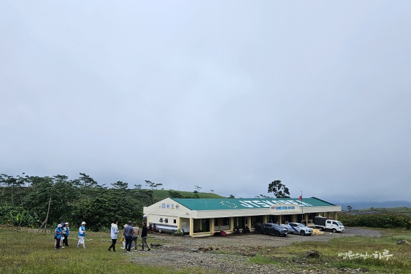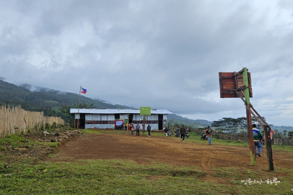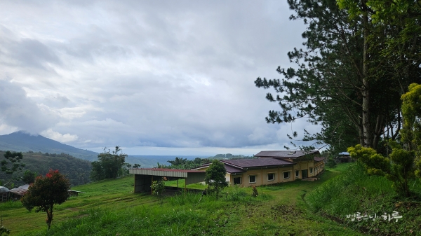 8시 10분, 까아뚜안을 떠나 다음 학교로 향했습니다. 산길을 1시간 정도 달려 9시 15분에 끼누수한(Kinusuhan) 원주민 학교에 도착했습니다. 해발 1,400미터의 고지대에 자리한 이 학교 주변으로는 구름이 천천히 흘러가고 있었습니다.