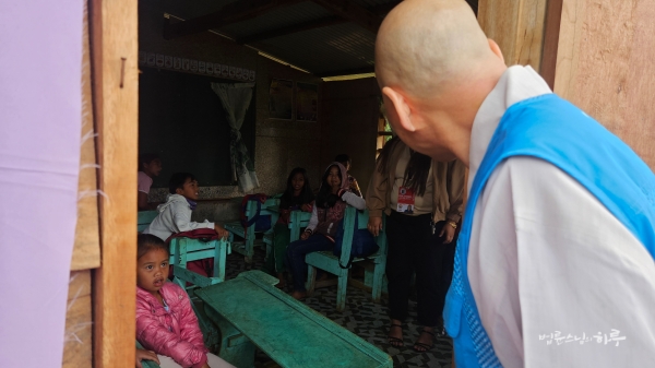 마을 인근에 커피농장이 개설되면서 일자리를 찾아 젊은 사람들이 들어오고 있다는 설명이었습니다. 스님이 장판이 깔린 교실 바닥을 보며 감탄했습니다.