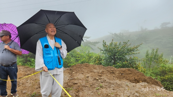 스님이 차량 진입로 문제를 지적했습니다.
