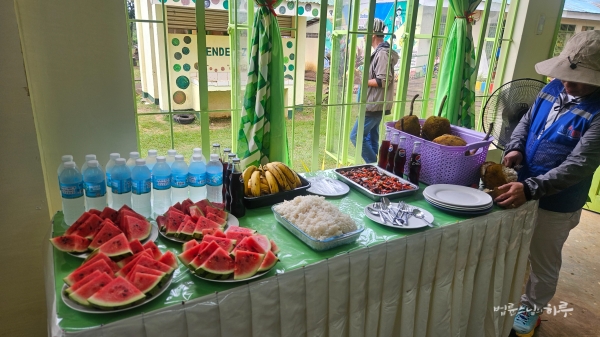 11시 50분 부지 답사를 마친 후 학교에서 준비한 점심 식사를 했습니다.