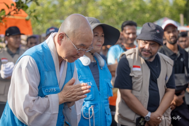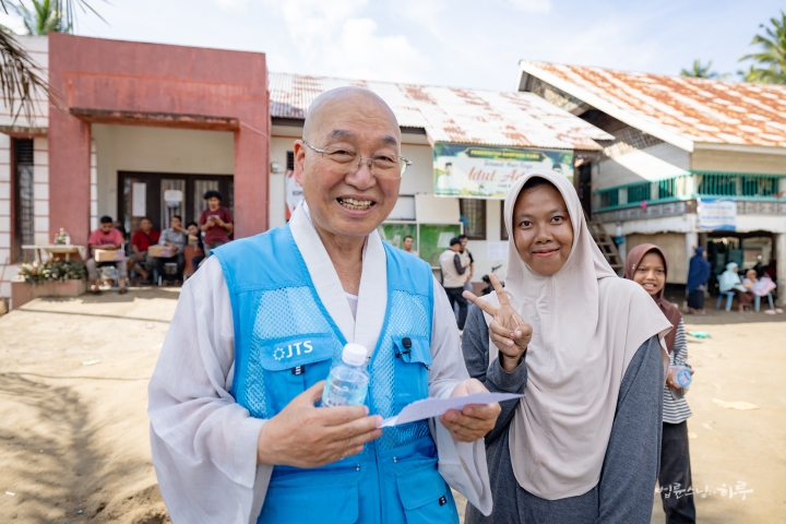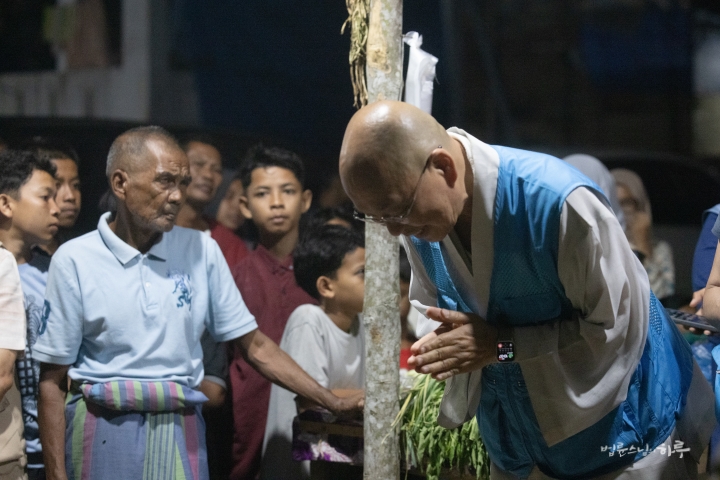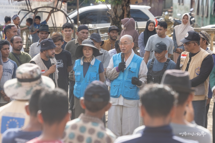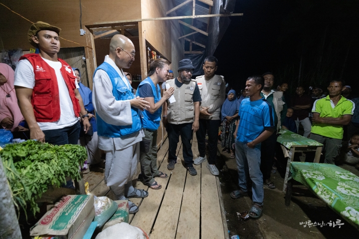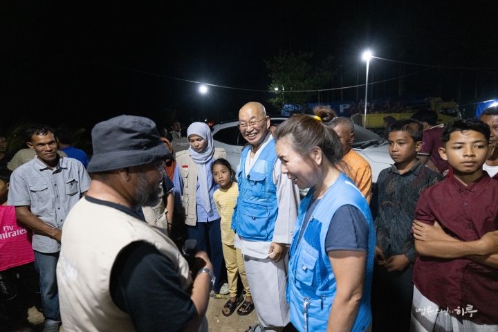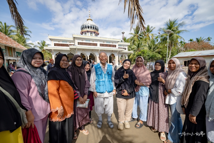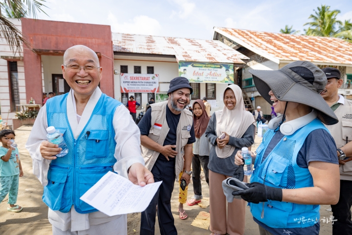 저희를 잊지 않고 찾아주셔서 정말 감사합니다. 보내주신 따뜻한 마음을 소중히 간직하며 이 시련을 잘 이겨내겠습니다. 스님의 발걸음이 닿는 곳마다 평화와 행복이 가득하기를 진심으로 기원합니다. 부디 항상 건강하십시오. 정말 감사합니다. 인도네시아 아체 꾸부 마을 주민 드림.”