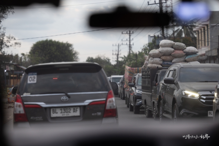 예상대로 임시로 지어놓은 다리가 가까워지자 차가 엄청 막혔습니다. 구호 물품을 실은 차량도 저녁 8시는 넘어야 마을에 도착할 것 같았습니다.