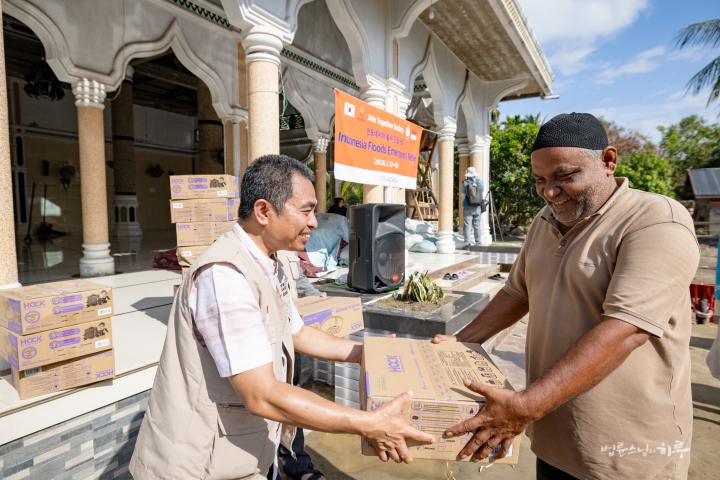 안녕하세요. 오늘은 인도네시아 홍수 피해 긴급구호 물품을 배분하는 2일째 날입니다.