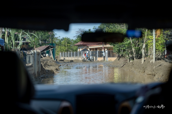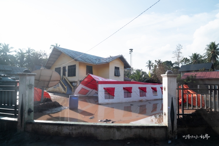 어제 쿠룽부카 마을 주민들에게 구호 물품을 배분했던 곳도 물에 잠겨 있었습니다. 비가 많이 내린 것도 아닌데 금세 침수된 마을을 보니 주민들의 어려움이 느껴졌습니다.