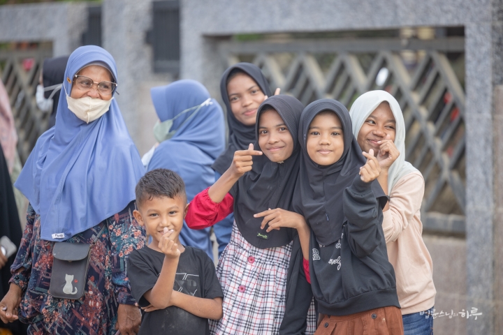 임시 거주처인 모스크에서 지내고 있는 아이들은 한국인 활동가들과 마주칠 때마다 "안녕하세요", "사랑합니다", "언니, 오빠"라며 연신 환하게 웃었습니다.