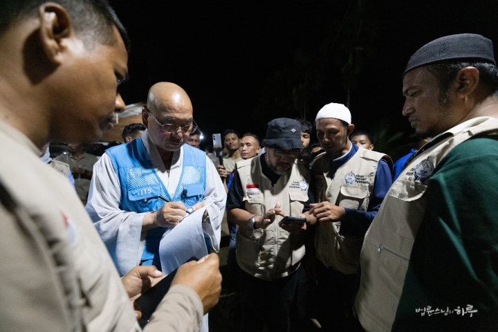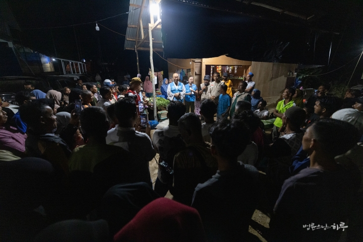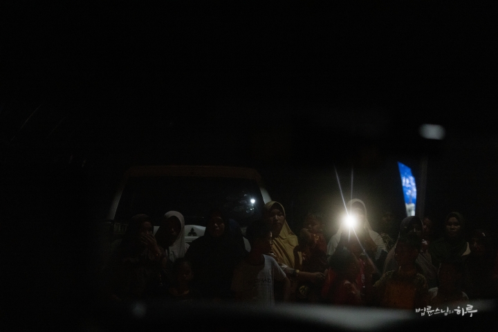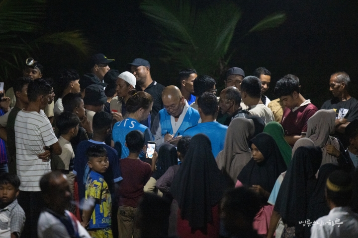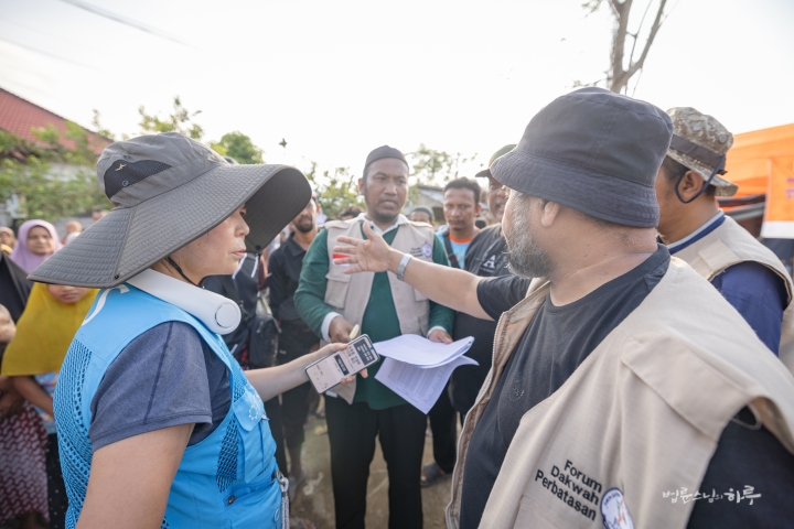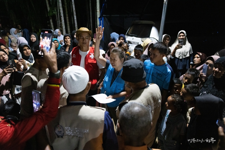 “어둡더라도 오늘 밤에 배분을 할래요? 내일 새벽 일찍 배분을 하고 반다아체로 바로 이동할래요? 여러분들이 내일은 출근을 해야 하잖아요.”