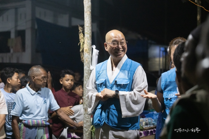 이 마을은 316 가구가 사는 마을인데 이번 긴급구호 대상 중 가장 규모가 큰 마을입니다. 마을 주민들이 모두 모이자 스님이 주민들에게 위로의 말을 건넸습니다.