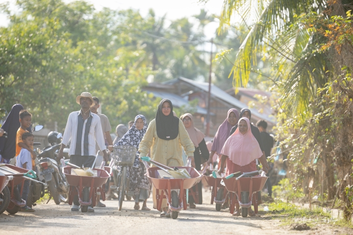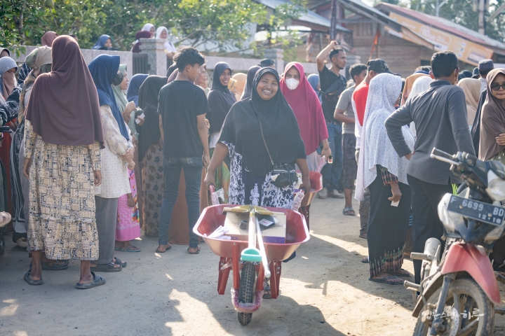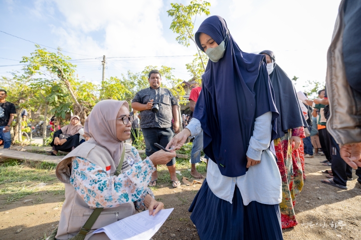 다음 배분 장소로 빠르게 이동했습니다. 차로 15분을 이동하여 판테 바로 쿰방(Pante Baro Kumbang) 마을에 도착했습니다.