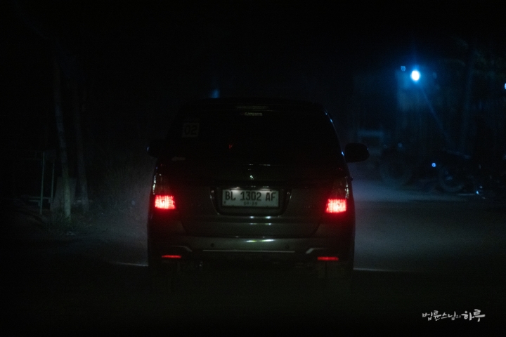 시골 길이여서 길을 찾기가 쉽지 않았습니다. 차가 들어갈 수 없는 길을 만나 다른 길을 찾아 되돌아갔습니다. 드디어 저 멀리 마을 주민들이 모여 있는 곳에 불빛이 보였습니다. 밤 9시에 사왕 마을에 도착했습니다.