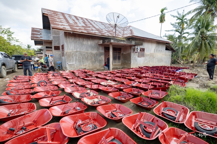 오늘 첫 번째로 구호품을 배분하기로 한 마을은 꾸부(Kubu) 마을입니다. 어제 배분할 계획이었지만 손수레를 조립하는 데에 시간이 많이 소요되어 오늘 오전에 배분하기로 했습니다.