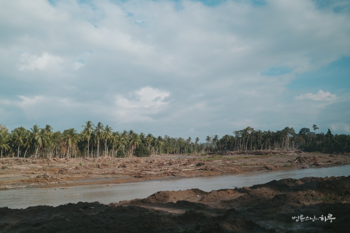 논에 가보니까 모래가 1미터 이상 쌓여 있어서 논농사는 더 이상 지을 수가 없었습니다. 앞으로 여기에 카사바를 심든지, 감자를 심든지, 모래 위에 자랄 수 있는 식물을 심어야 할지도 모르겠습니다. 앞으로 FDP와 계속 의논해서 힘이 닿는 데까지 여러분을 돕겠습니다. 저도 이번 일을 계기로 아체에 FDP처럼 좋은 분들이 모인 단체가 있다는 사실을 처음 알게 되었습니다. 앞으로 FDP와 협력하여 여러분을 도울 수 있는 방법을 계속 찾아보겠습니다.