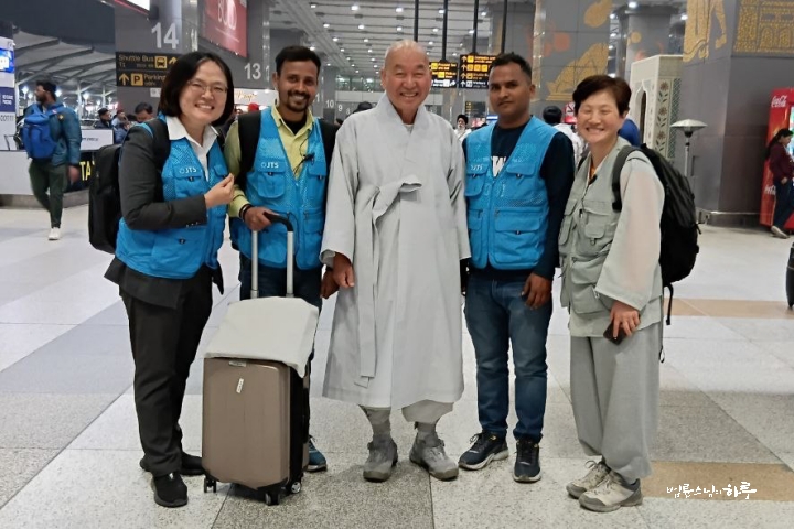 스님은 새벽 수행과 명상을 마친 후 인도로 가져갈 짐을 쌌습니다. 어제 인도네시아 구호 활동을 마치고 돌아와 다시 27일간의 해외 일정을 시작합니다. 오전 9시에 서울 정토회관을 출발하여 인천 공항으로 향했습니다.