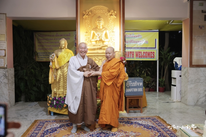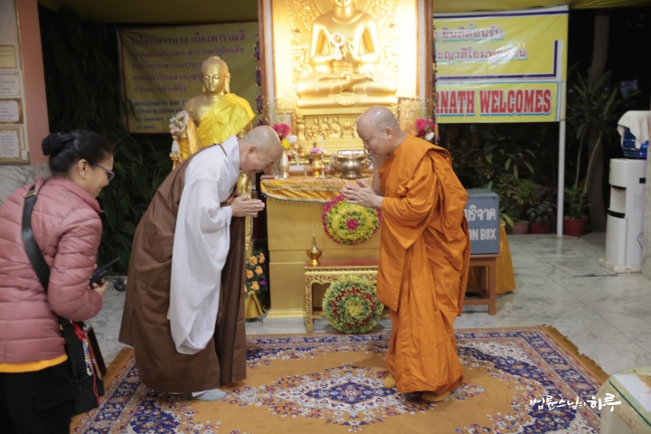 입재 법문을 하러 가는 도중에 마침 태국절의 주지스님께서도 법회를 마쳐서 함께 반갑게 인사를 나누었습니다.