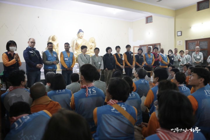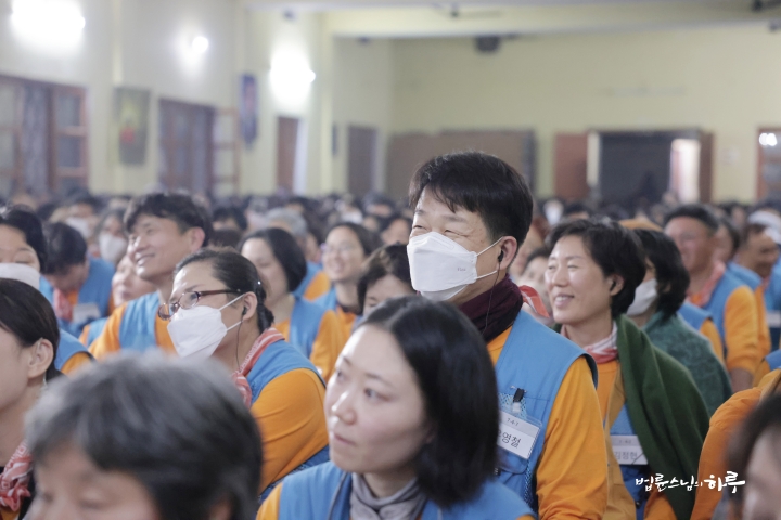마지막으로 세계 각지에서 다양한 경로로 바라나시에 집결한 460여 명의 성지 순례단이 각자의 자리에서 손을 흔들며 인사했습니다. 넓은 비파사나홀이 박수 소리로 가득 찼습니다. 16일간의 여정을 함께할 도반들과 인사를 나누니 비로소 성지 순례의 시작을 실감했습니다.