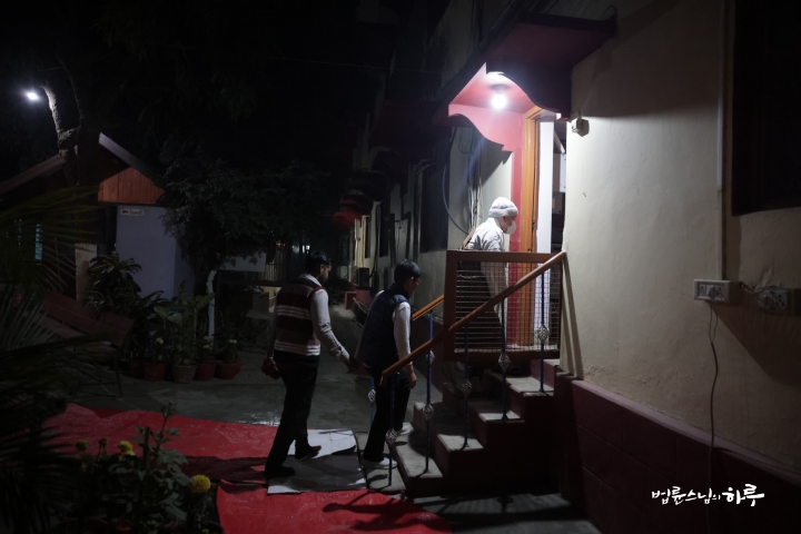 오전 5시 50분, 스님은 숙소에서 누룽지와 김치로 간단히 아침 공양을 했습니다. 6시 40분에 숙소를 출발해 제2회 국제불교정상회의가 열리는 바라트 만다팜(Bharat Mandapam)으로 향했습니다.