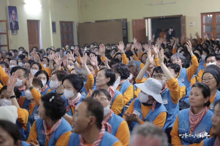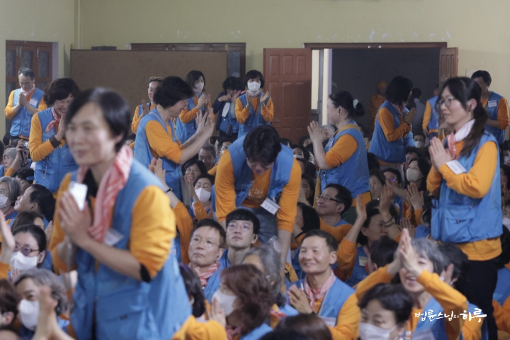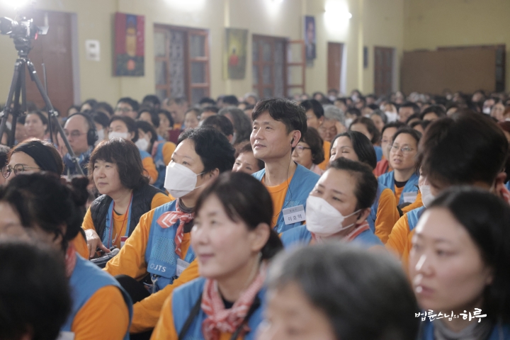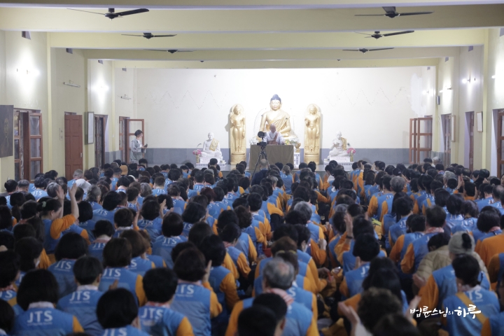 오후 7시, 사르나트 태국절 비파사나홀에 500여 명이 모인 가운데 제35차 인도 성지 순례 입재식이 시작되었습니다. 입재식에는 460명의 성지순례단과 15명의 인솔 법사, 17명의 스태프, 13개 호차를 안전하게 운전해 줄 기사님과 보조 기사님 26명이 함께했습니다.