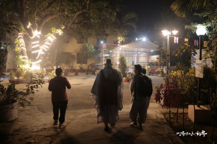 그러나 우리는 먹고, 입고, 자는, 이른바 ‘의식주에 너무 구애받지 않는 관점’에서 성지순례에 임해야 합니다. 숙소가 허름할 수는 있지만, 들판의 나무 아래에서 자는 것보다는 낫습니다. 제가 예전에 침낭 하나만 가지고 마을 처마 밑에서 자며 다녀본 적이 있는데, 아무 문제가 없었습니다. 이곳 인도에는 14억 명이 넘는 사람들이 살고 있습니다. 우리라고 해서 여기서 살지 못할 이유가 있겠습니까.