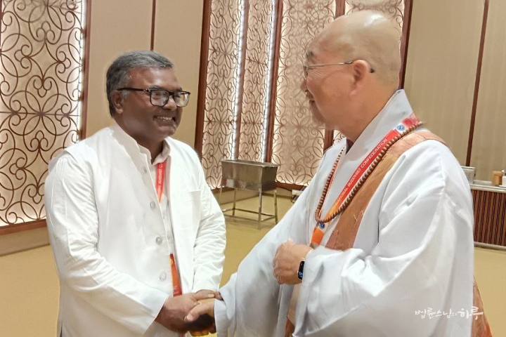 점심 식사 시간에는 마하보디 소사이어티 스님, 얼마 전 한국을 방문한 스리랑카 '화해를 위한 종교인' NGO 단체 담마삭티(Dharmashakthi) 회장 아사지 스님 등 여러 나라 스님들과 인사를 나누었습니다. 한국에서는 조계종 문화부장, 태고종 종무원장, 부산 홍법사 심산 스님 등이 참석했습니다.