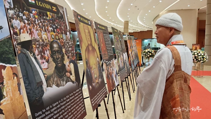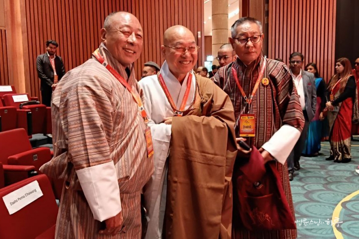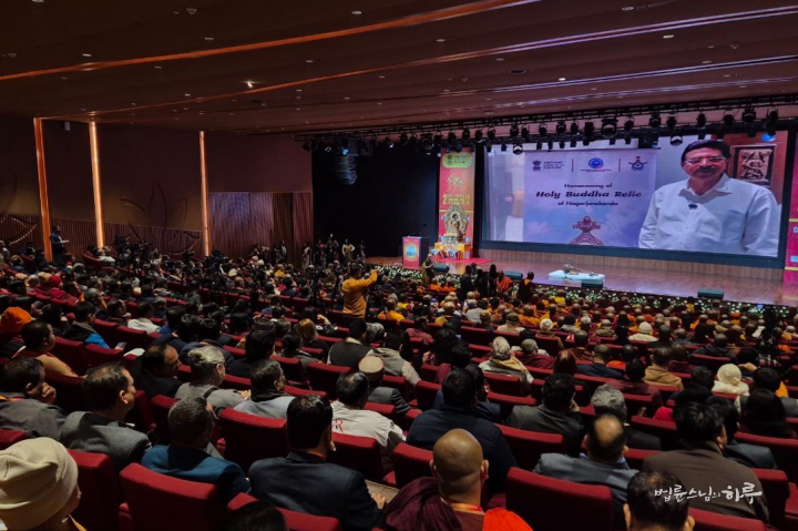이번 국제불교정상회의에는 40여 개 나라의 스님들이 초청되었고, 인도 문화관광부 장관이 주빈으로 참석했습니다. 원래 참석 예정이었던 모디 총리는 참석하지 않았습니다.