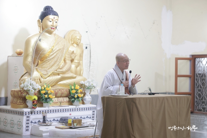그래서 성지순례를 하는 이 2주 동안만큼은, ‘나는 수행자다’라는 관점으로 다니시길 바랍니다. ‘출가 수행자는 원래 굶어도 되는데, 밥도 좀 해 먹을 수 있으니 다행이네.’ 이런 관점을 가져보시길 바랍니다. 불편함을 감수해 보라는 뜻입니다. 불평하기 시작하면, 곧 ‘내가 왜 여기에 왔을까?’ 하고 후회하게 됩니다. 의식주에 대한 불평을 탁 놓아버리는 것, 그것이 첫 번째 관문입니다.