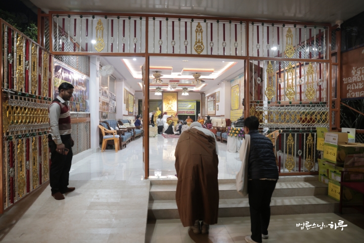 태국절로 들어가니 주지스님께서 로비에서 대중 법회를 열고 있었습니다. 스님은 건물 앞에서 조용히 인사만 드리고 건물 옆 작은 문을 통해 숙소로 들어갔습니다.