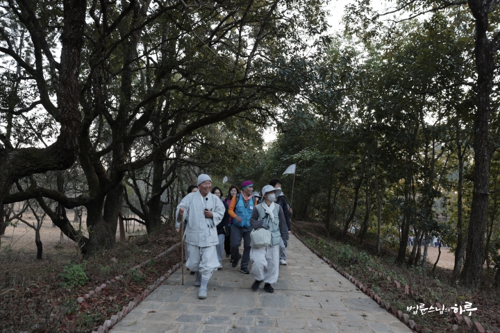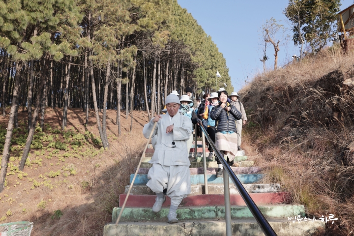 스님은 뒤따라오는 순례단을 먼저 보내고 천천히 계단을 올랐습니다.