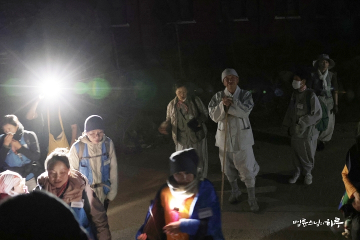 오전 5시 10분, 버스는 탄센에 도착했습니다. 안개가 짙지 않아 예상보다 한 시간 일찍 도착했습니다. 사방은 아직 어둠에 잠겨 있었지만, 스님과 순례단은 산 정상을 향해 한 발 한 발 걸음을 옮겼습니다.