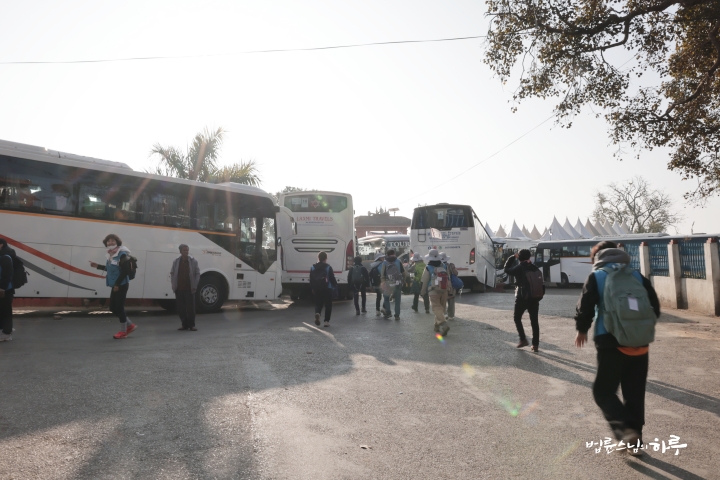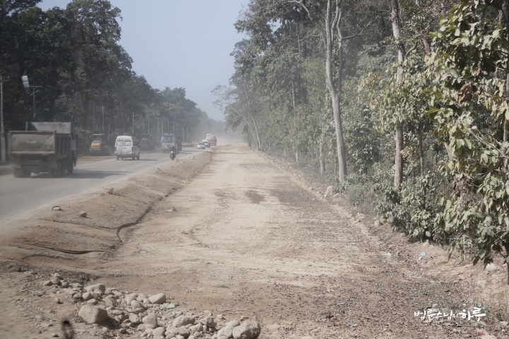 오전 8시 45분, 산을 내려온 순례단은 부처님이 성장하신 카필라바스투를 향해 출발했습니다. 더 빨리 가려고 국도를 선택했지만, 4차선 확장 공사 중이라 길이 좋지 않아 오히려 한 시간이나 더 늦어졌습니다.