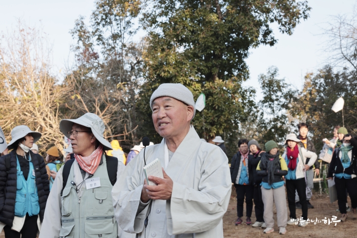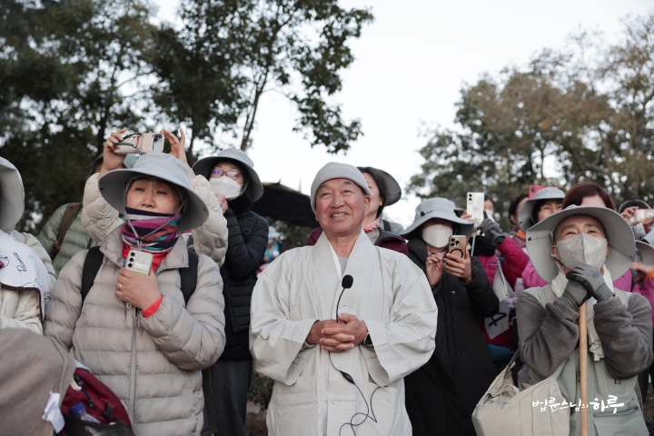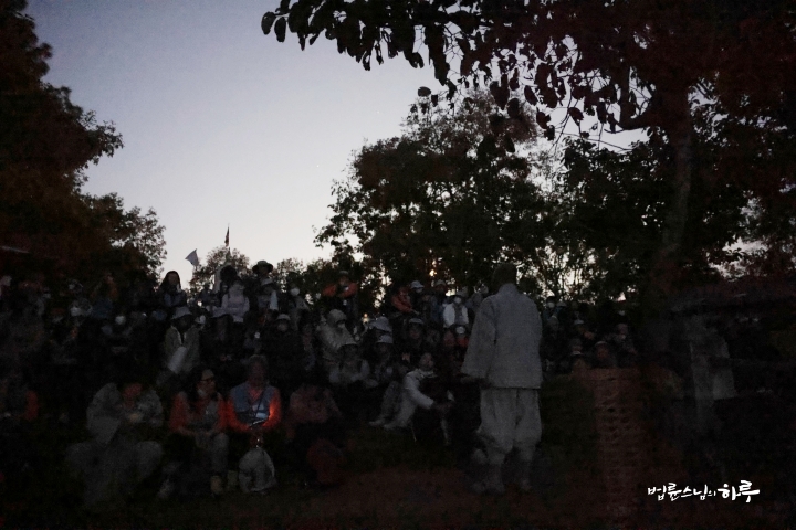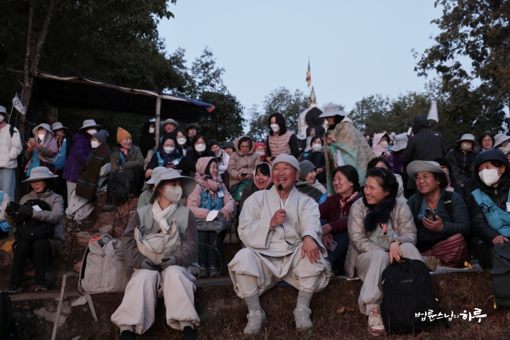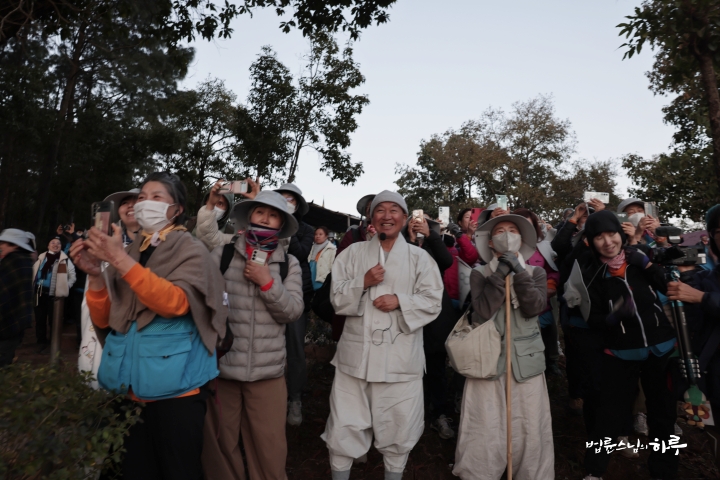 스님은 해가 잘 보일 만한 자리에 순례단과 함께 자리를 잡고 이야기를 나누며 일출을 기다렸습니다.