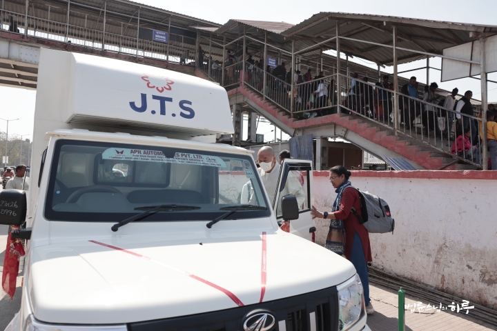 기차역 출구에는 수자타아카데미에서 마헨드라 님과 아난 님이 마중을 나와 있었습니다. 차를 타고 수자타아카데미로 출발했습니다.